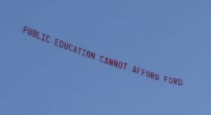 David Clegg of the Ontario teachers’ union wastes money on polluting plane advertising that could have been used for the Children – June 24, 2016,